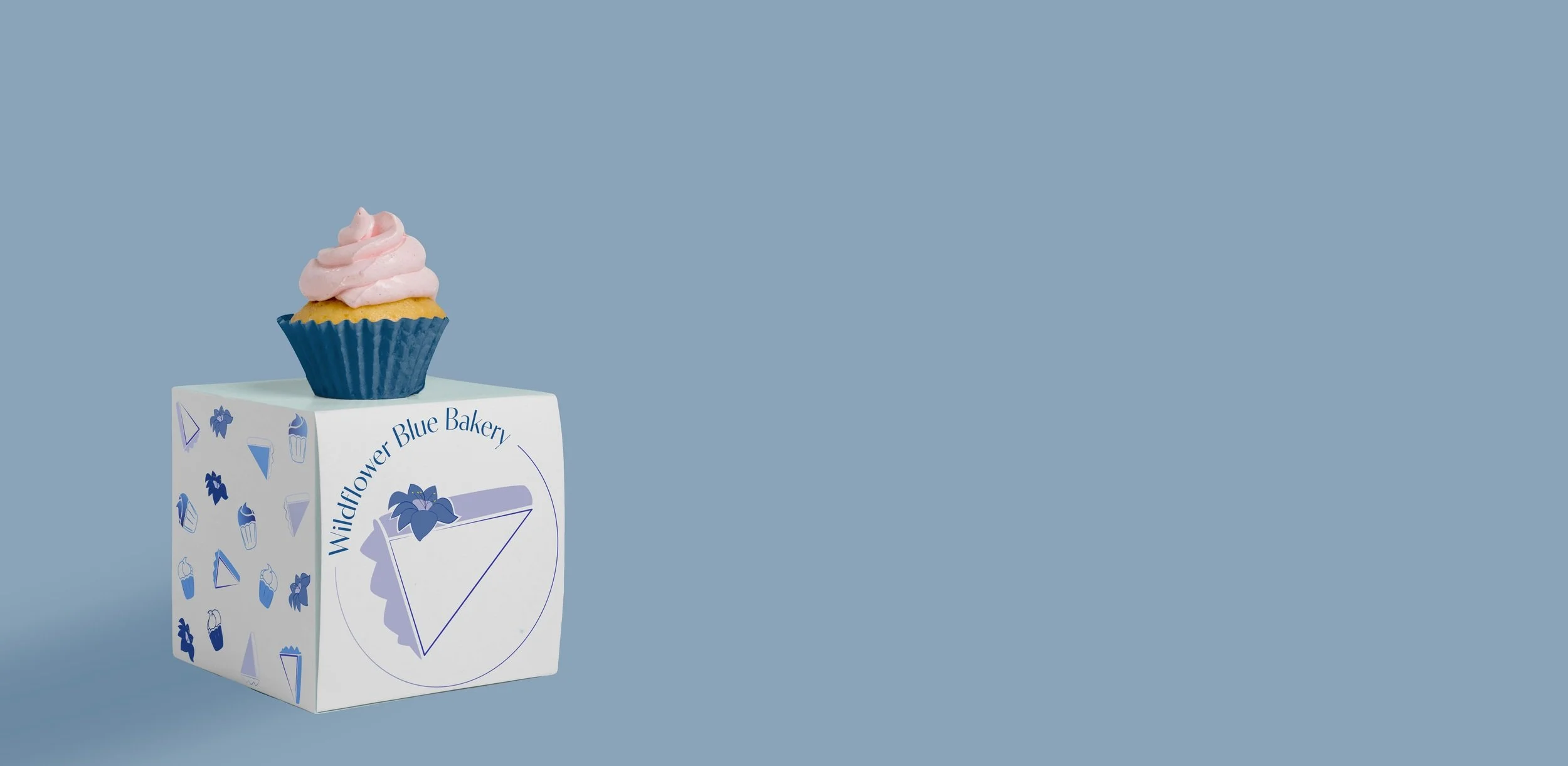 This project consisted of reworking a locally established bakery business’ in the quaint North Carolina town of Waynesville. The challenge was to freshen up the brand, while maintaining the image of a locally loved bakery. This Included entirely new branding, signage, logos and packaging. The bakery’s original logo was a basic vector illustration of a flower cupcake. My first challenge was to create a more personalized, fun logo as the original logo was clean, but was lacking character. I kept the clean look by maintaining the white background and keeping the illustrations simple. The blue, purple and lavender shades used for the color palette were an easy decision, based off the name itself.